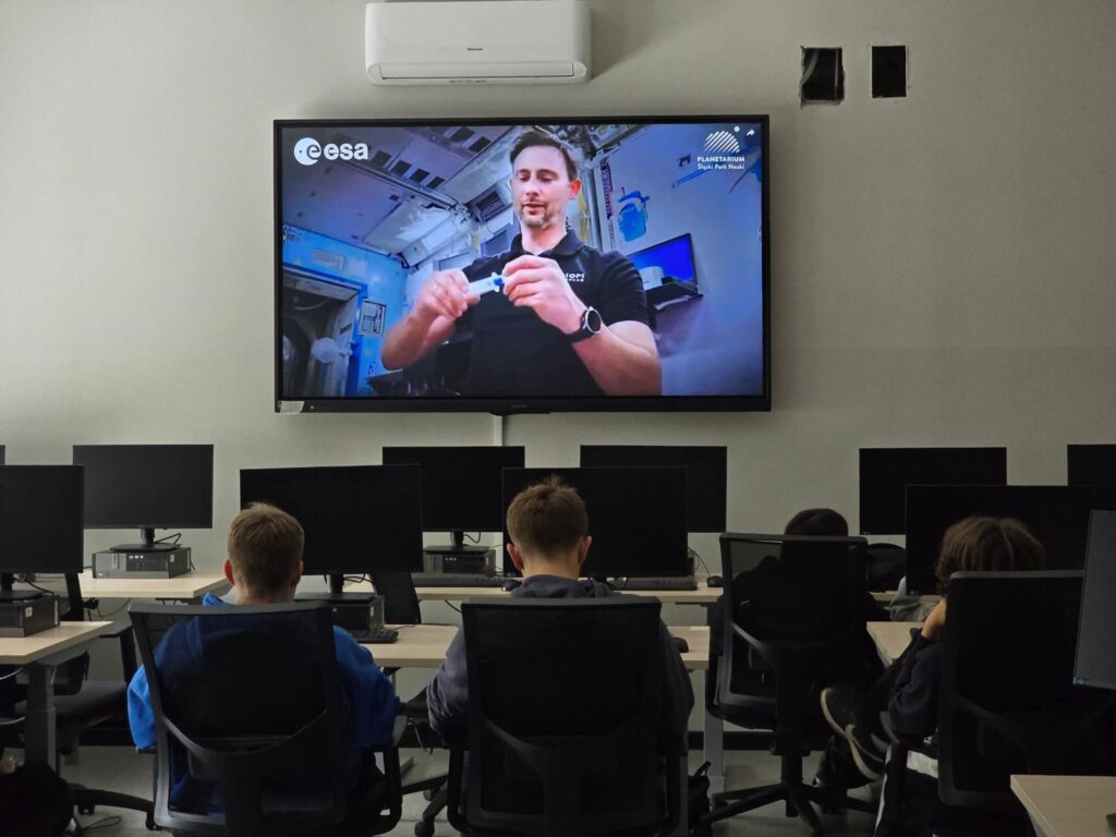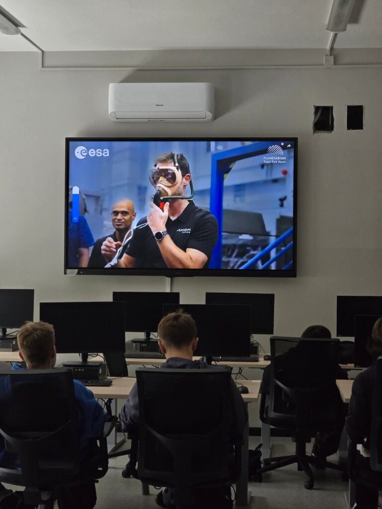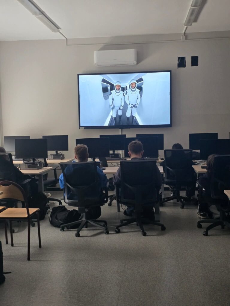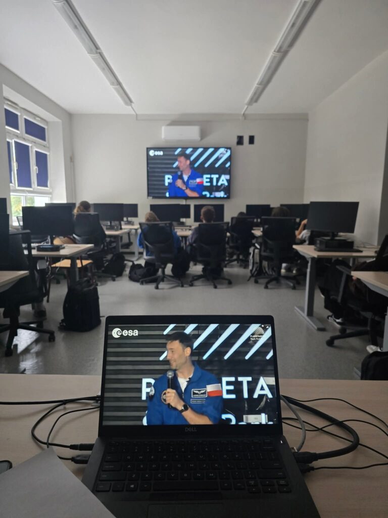 9 października uczniowie klasy 3a LO mieli niezwykłą okazję uczestniczyć w spotkaniu online z Panem Sławoszem Uznańskim-Wiśniewskim – znanym polskim astronautą, który w ramach naukowo-technologicznej trasy misji IGNIS „Polska sięga gwiazd” dzieli się swoją wiedzą i doświadczeniem z młodym pokoleniem.
