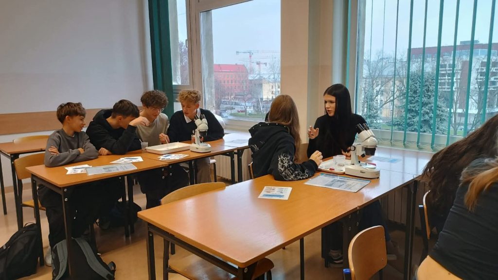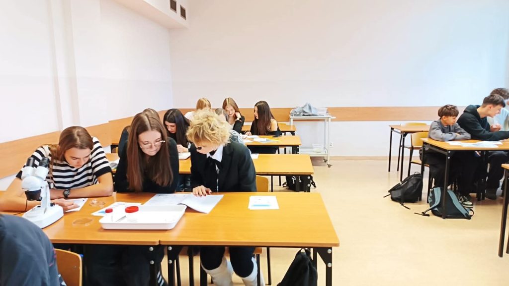 Uczniowie klasy 1D pod opieką wychowawczyni mieli okazję poczuć się jak prawdziwi naukowcy. W budynku Uniwersytetu Rolniczego na Wydziale Inżynierii Środowiska i Geodezji uczestniczyli w warsztatach biologicznych, podczas których pracowali z okazami makrobezkręgowców.
