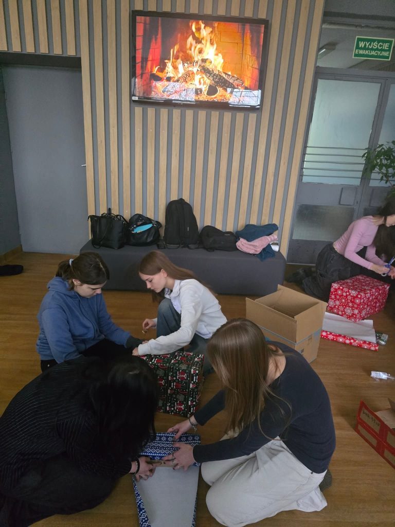 W tym roku ponownie włączyliśmy się w akcję Szlachetna Paczka. Wielkie pakowanie odbyło się w wyjątkowej atmosferze – przy świątecznych piosenkach i w blasku wirtualnego kominka, który uruchomił Pan Dyrektor, dbając o jeszcze bardziej świąteczny klimat. Radość obdarowanej rodziny była ogromna, a my po raz kolejny przekonaliśmy się, że pomaganie naprawdę ma sens.
