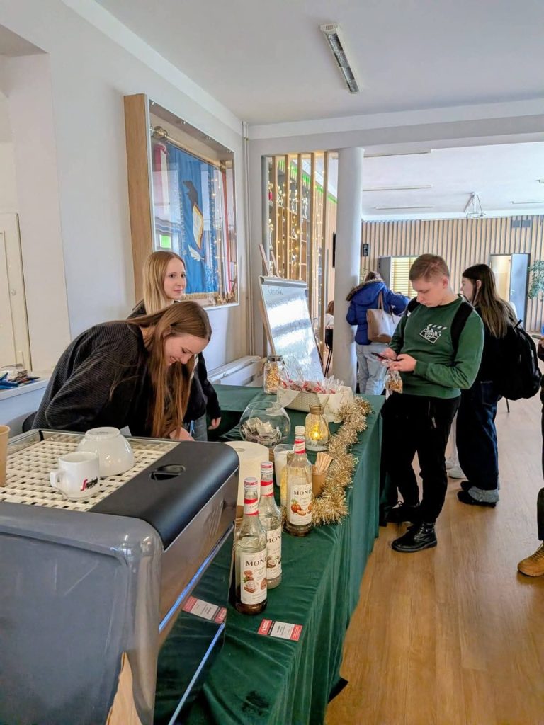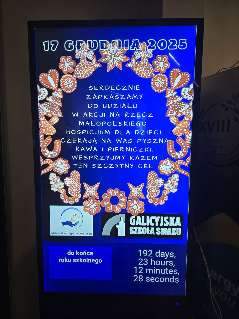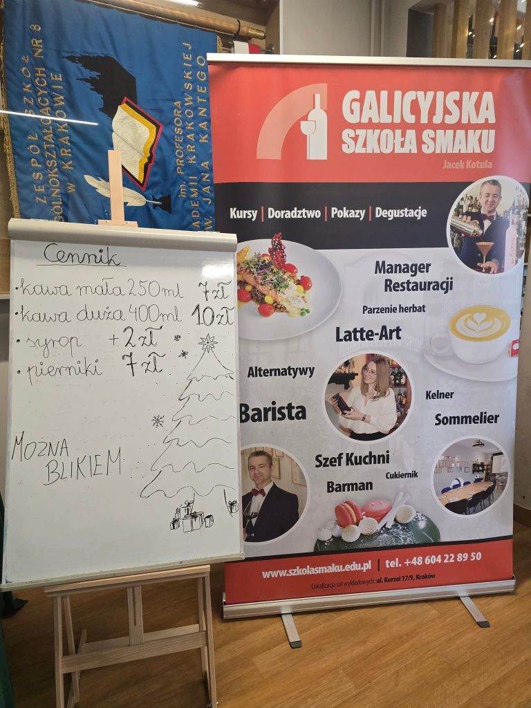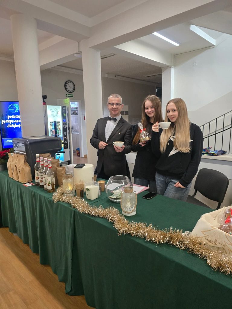W środę w szkolnym holu ponownie zagościła Galicyjska Szkoła Smaku. Aromatyczna kawa cieszyła się ogromnym zainteresowaniem, a każdy zakup wspierał Małopolskie Hospicjum dla Dzieci. Wielu uczniów i nauczycieli zatrzymywało się przy ekspresie, by napić się pysznej kawy i jednocześnie zrobić coś dobrego.