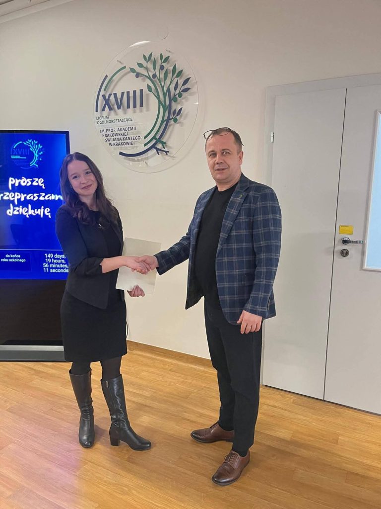 Serdecznie gratulujemy naszej uczennicy i życzymy jej dalszych sukcesów w nauce oraz rozwijaniu pasji.