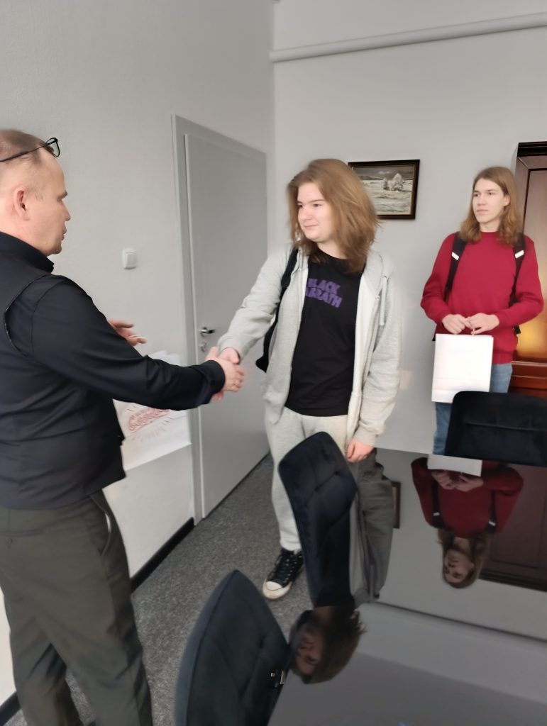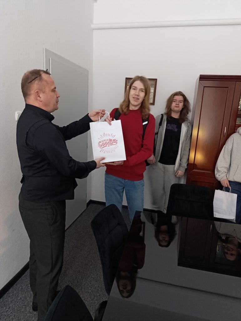Uroczyste wręczenie dyplomów i nagród odbyło się tuż przed feriami w gabinecie Pana Dyrektora. Drobne upominki dla laureatów zostały ufundowane przez wydawnictwo Macmillan, które od lat wspiera rozwój kompetencji językowych młodzieży.