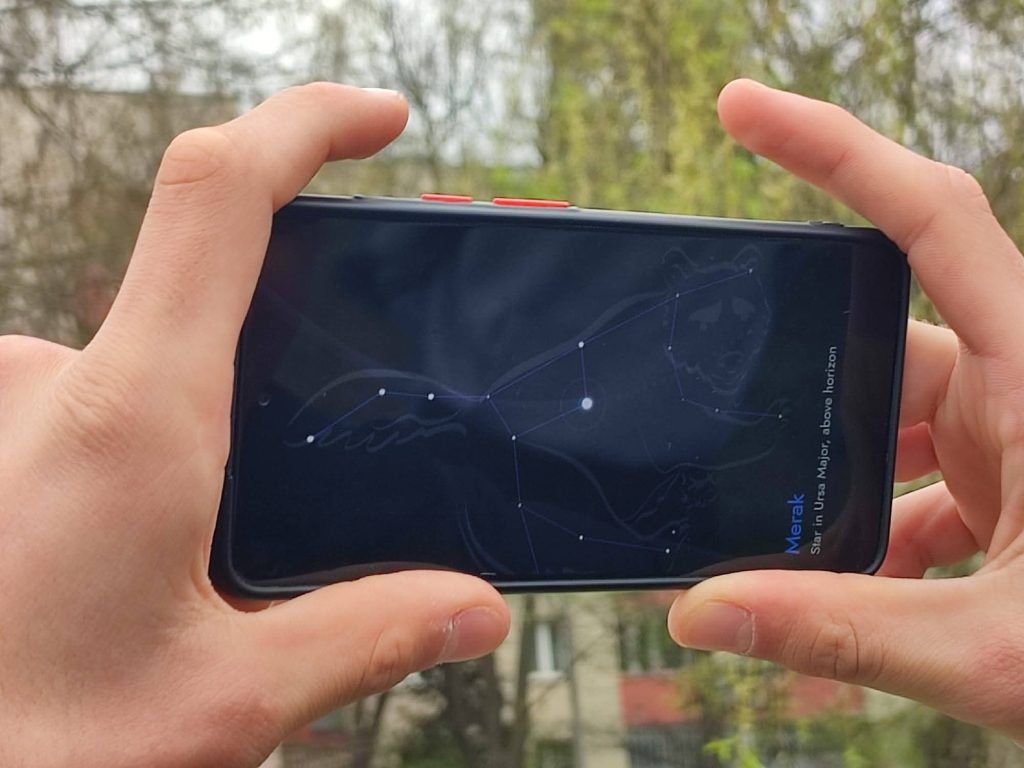 Podczas zajęć uczniowie korzystali również z aplikacji SkyView, która pozwala w czasie rzeczywistym rozpoznawać gwiazdy, planety i konstelacje. Dzięki temu mogli od razu sprawdzić, co dokładnie widzą nad sobą i jak nazywają się obiekty, które obserwują.