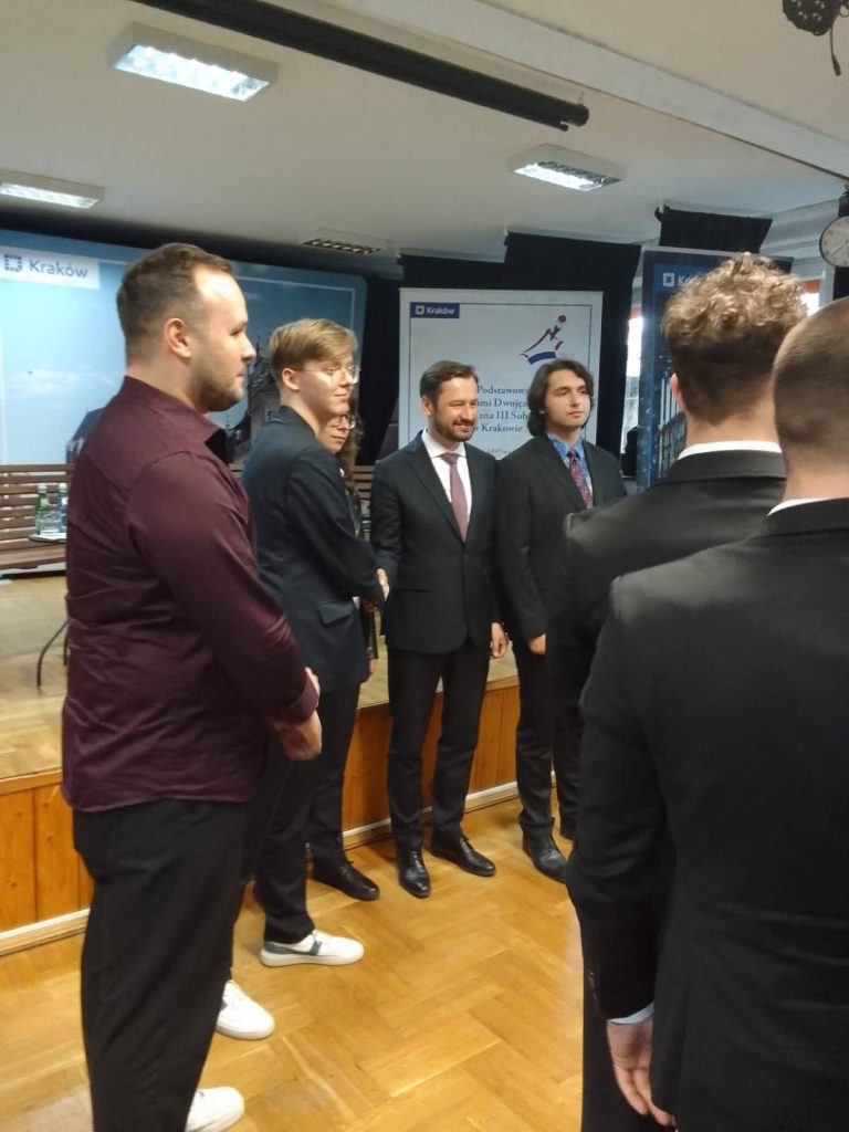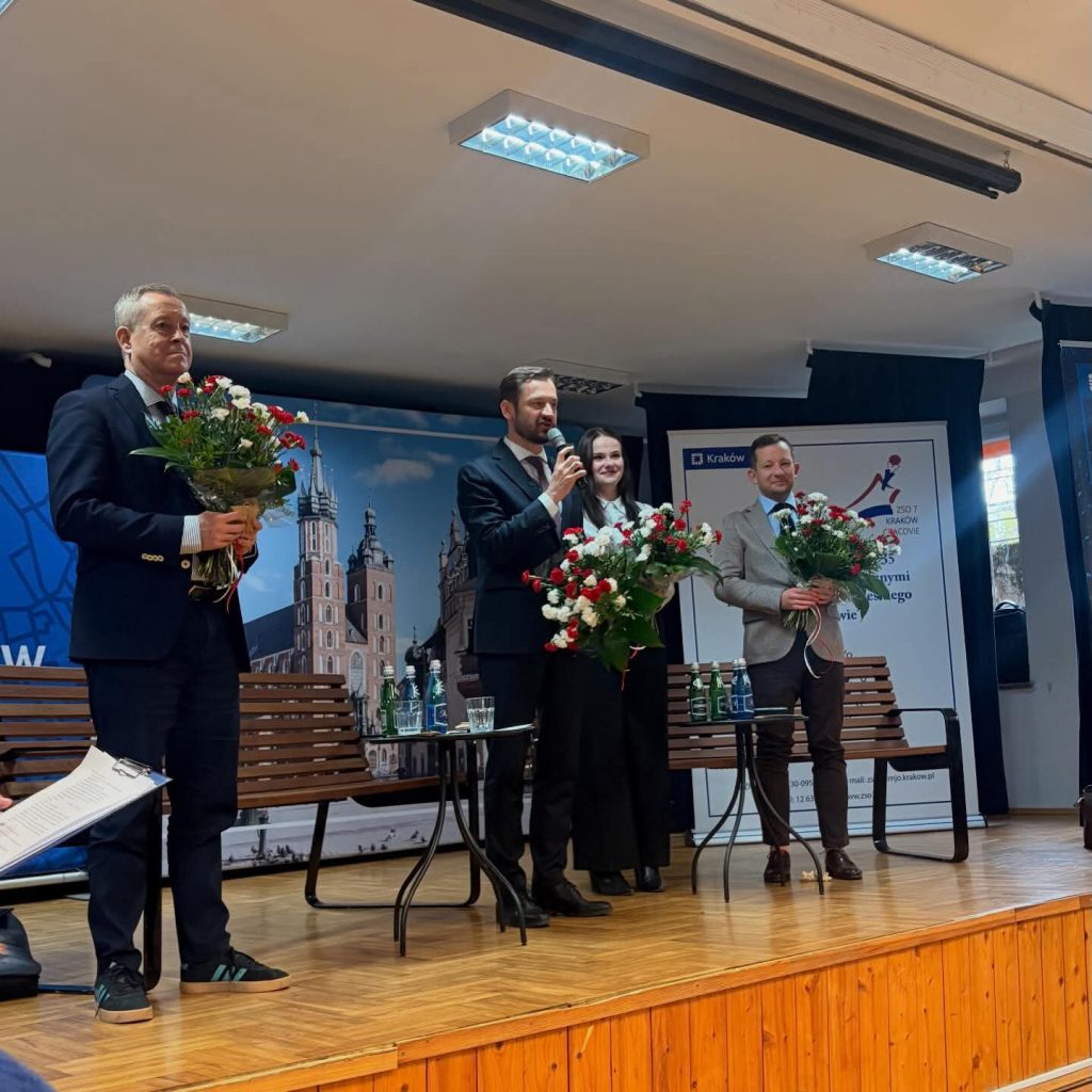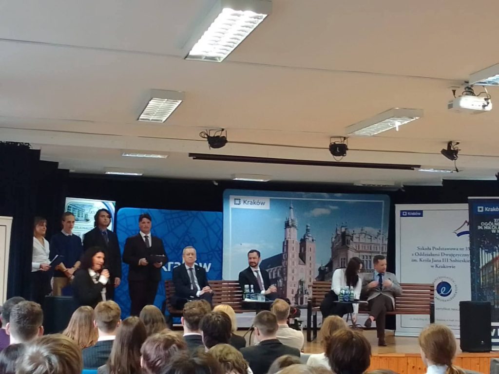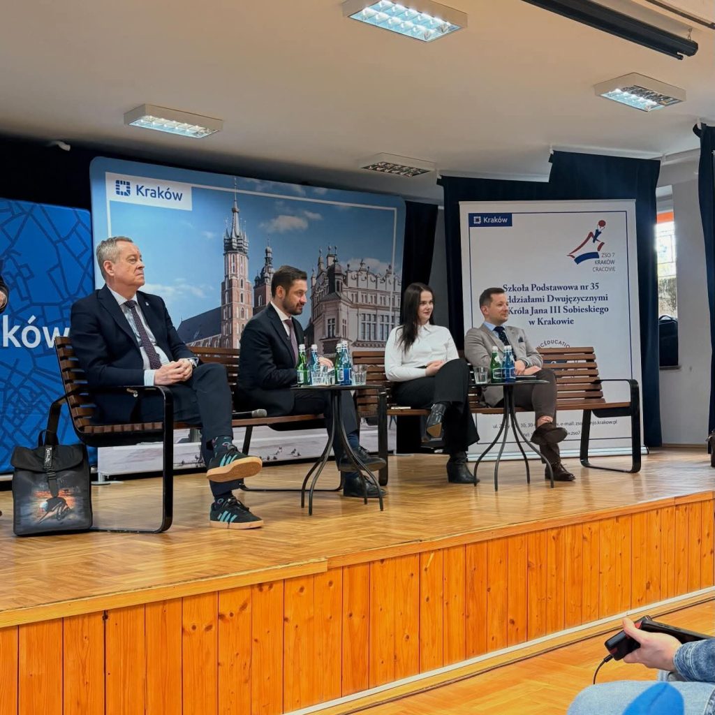 16 kwietnia reprezentacja naszej szkoły brała udział w spotkaniu z prezydentem Krakowa- Aleksandrem Miszalskim. Spotkanie to odbyło się w ramach inicjatywy Szkolna Ławka Dialogu. Nasi maturzyści mieli szansę zadać pytania dotyczące wielu ważnych aspektów życia w mieście, takich jak ekologia, mieszkalnictwo, szkolnictwo, rynek pracy, czy AI. Prezydent Miszalski nie uciekał od najtrudniejszych nawet tematów. Takie spotkania są niezwykle potrzebne, angażują młodych ludzi w sprawy związane z naszym miastem, uczą dyskusji i zwracają uwagę włodarzy Krakowa na naprawdę ważne dla młodych sprawy.