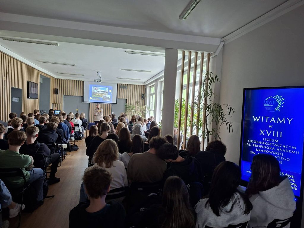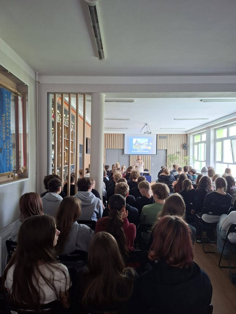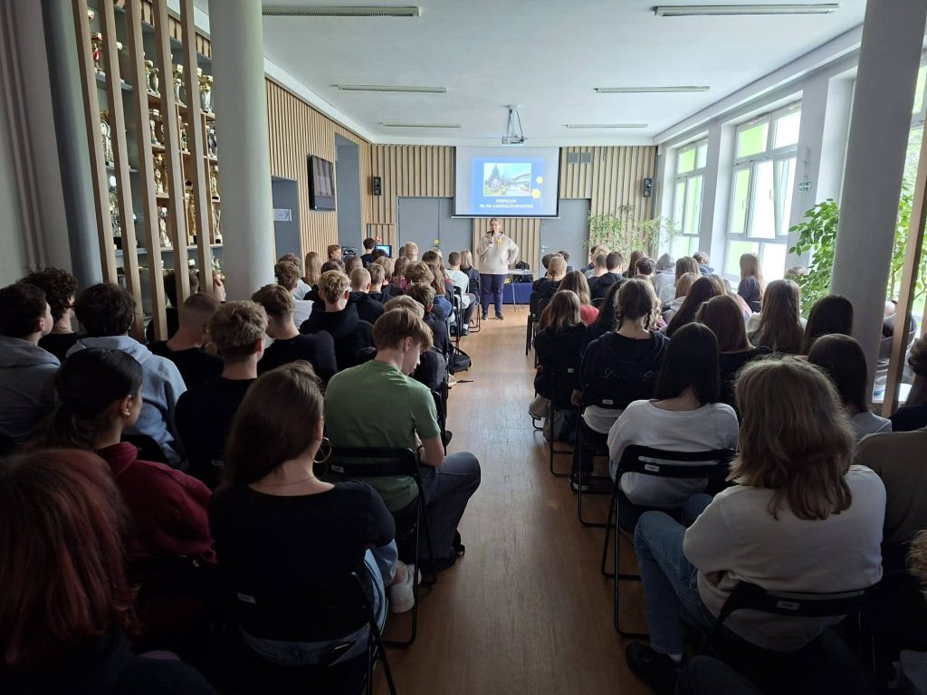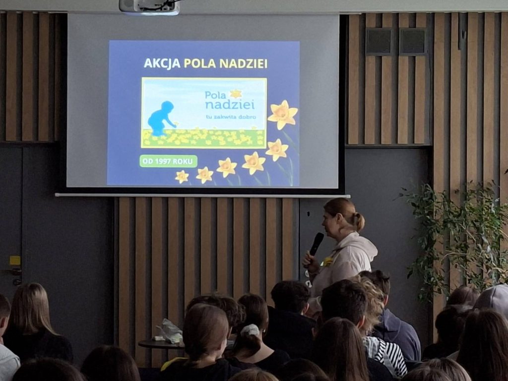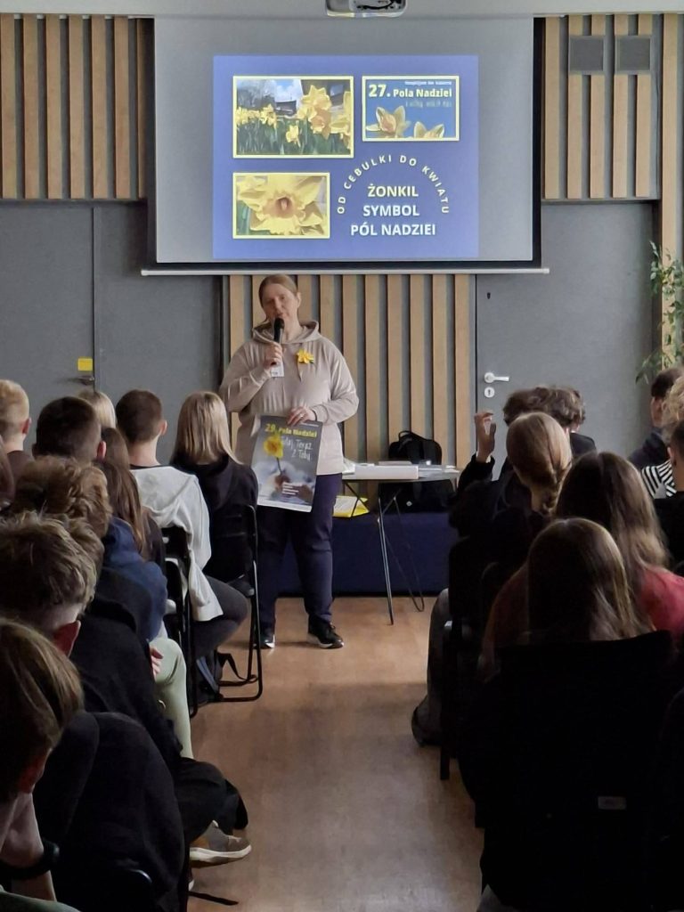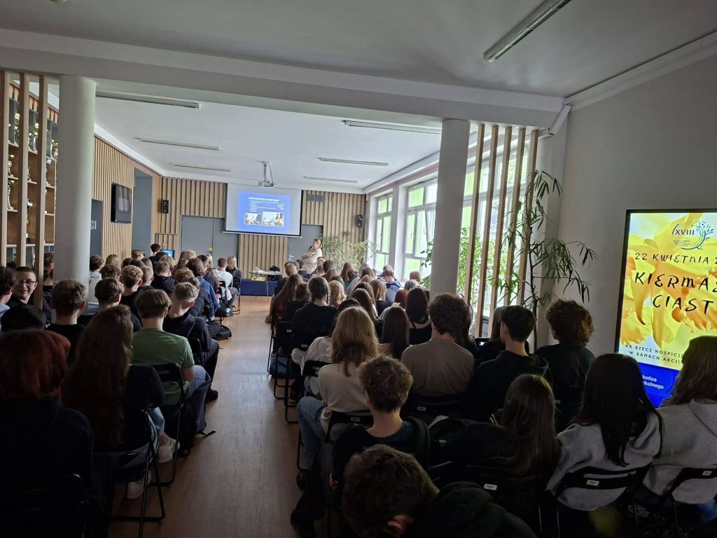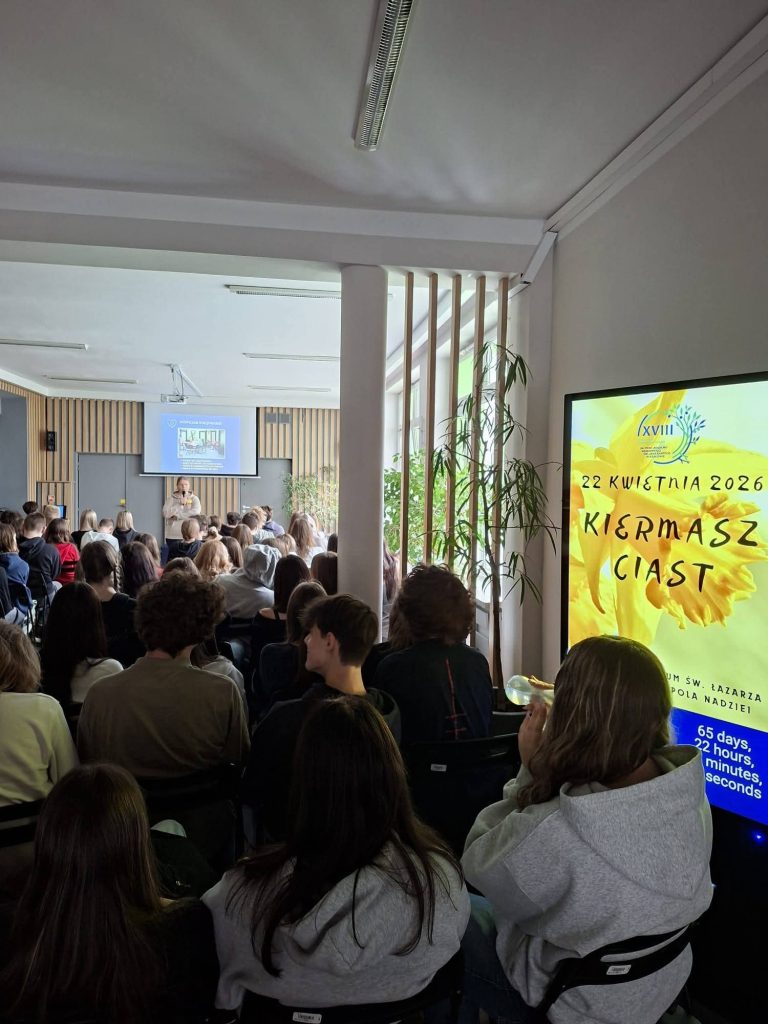 21 kwietnia 2026 r. naszej szkole gościła Pani Anna Dąbrowska z Hospicjum św. Łazarza w Krakowie. Podczas spotkania opowiedziała uczniom o działalności placówki oraz o historii jej powstania.